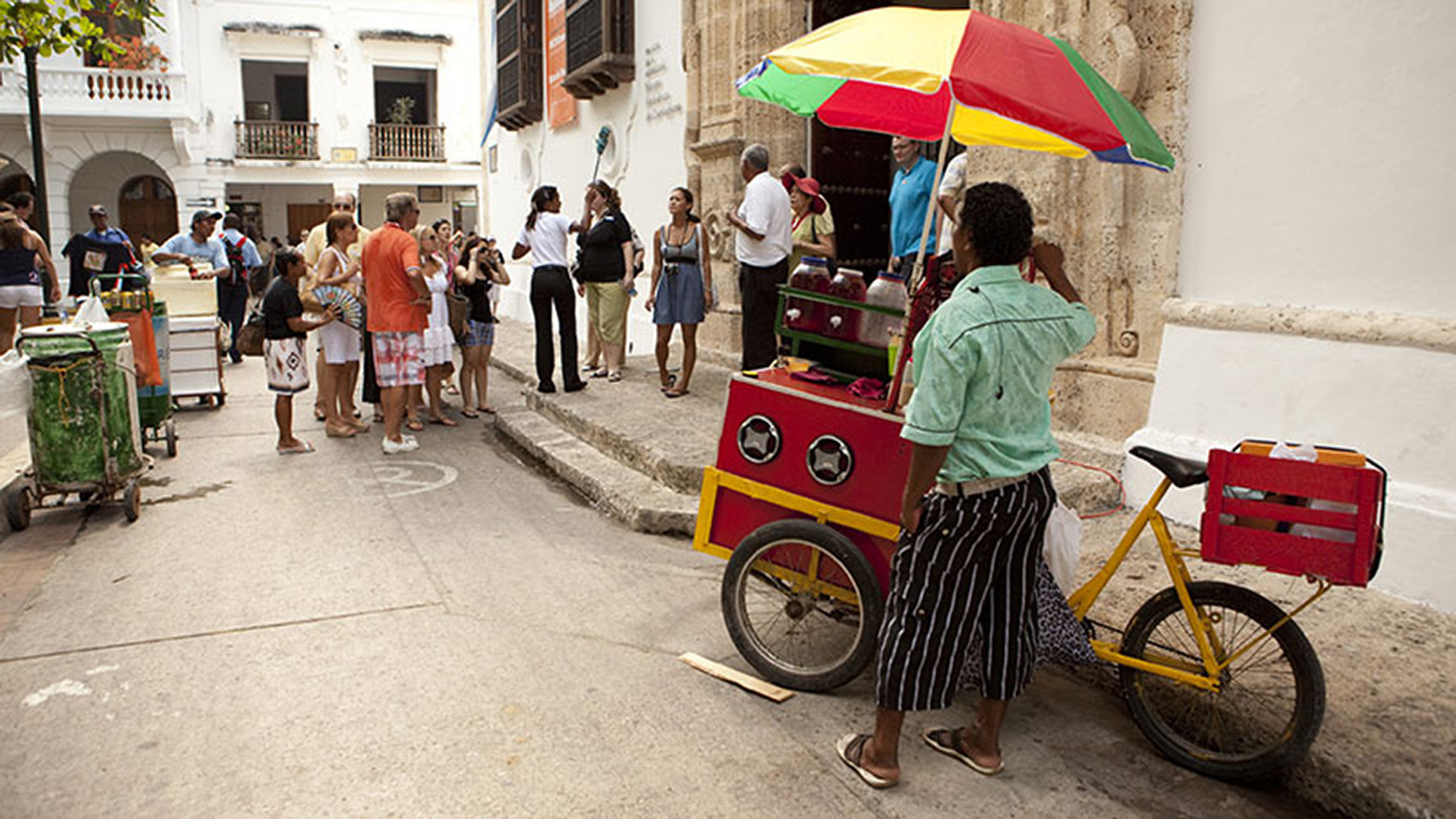 Raspao (Snow cone) is a man-operated vehicle with a built-in system for video capturing that records live action clips, every time the “raspadero” (raspao seller) makes an ice cone. The handle of the ice-shaving machine triggers two cameras randomly one at a time. One camera shows a close-up of the exchange between customer and seller. The other gives a view of its surroundings and the road. Real time video is shown on one of the screens simultaneously while it is recording. Thereafter, these video recordings are automatically uploaded to the web site (www.raspao.net).The cart has two buttons that trigger functionality when the cart is not recording. The first one shows the documentation of the cart being constructed collaboratively between residents in The Bosque, a working class neighborhood in Cartagena. The second one shows previous recordings of people interacting with the piece.